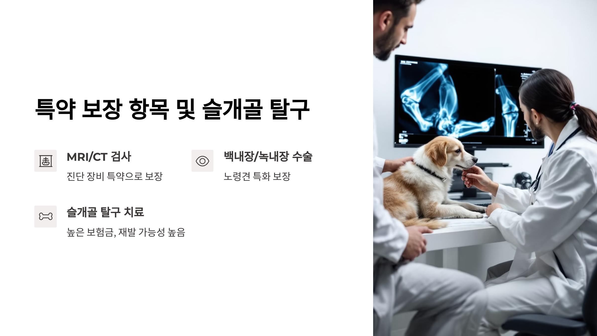 ✔ 일부 보험사는 슬개골·고관절 탈구 보장 특약 별도 제공