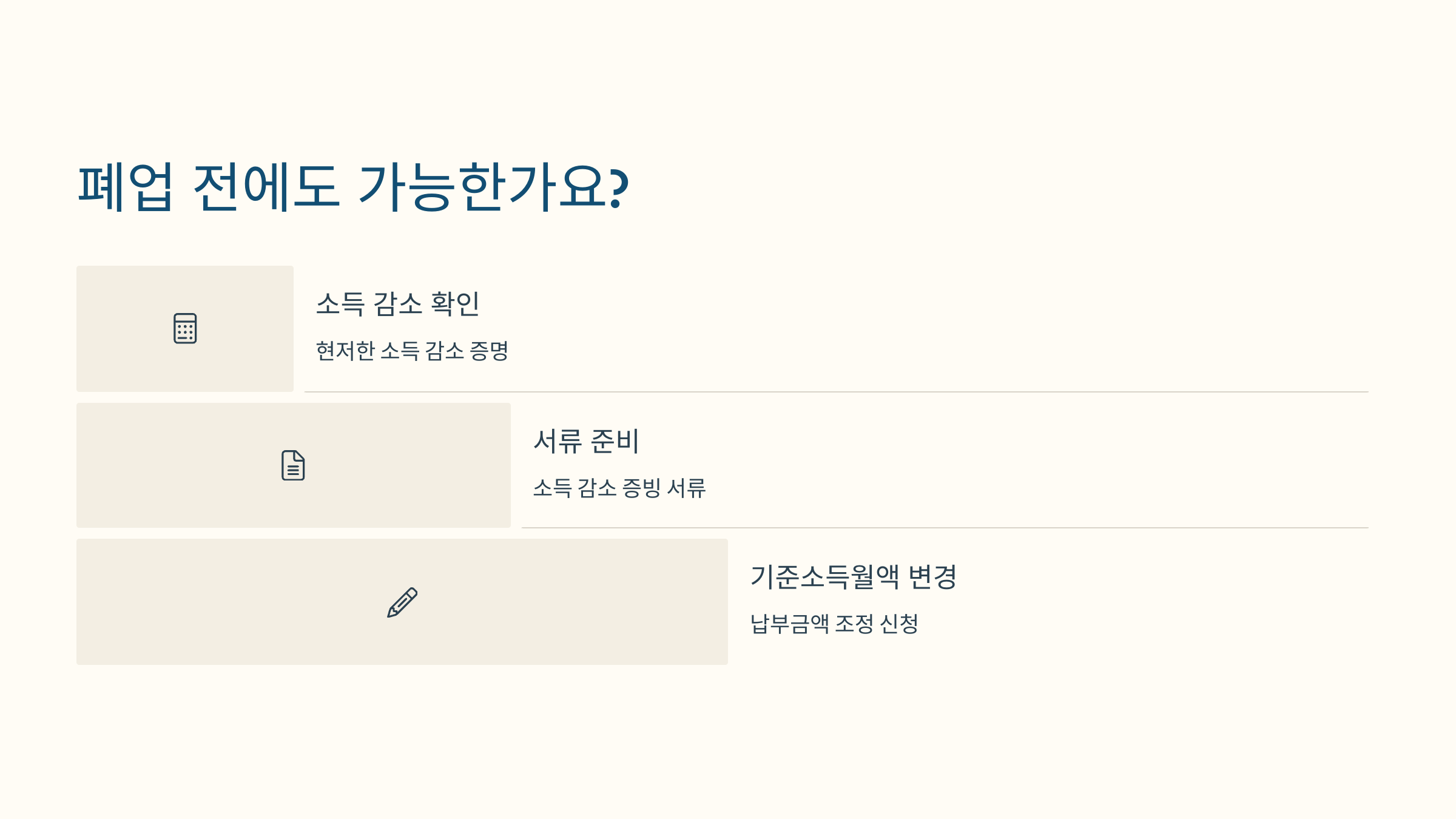 현재 사업을 계속 운영 중이더라도, 매출 감소, 일시 휴업, 소득 하락 등의 증빙이 있으면 공단에서 납부예외를 승인해줘요. 폐업신고는 선택사항일 뿐, 필수 조건은 아니에요.
