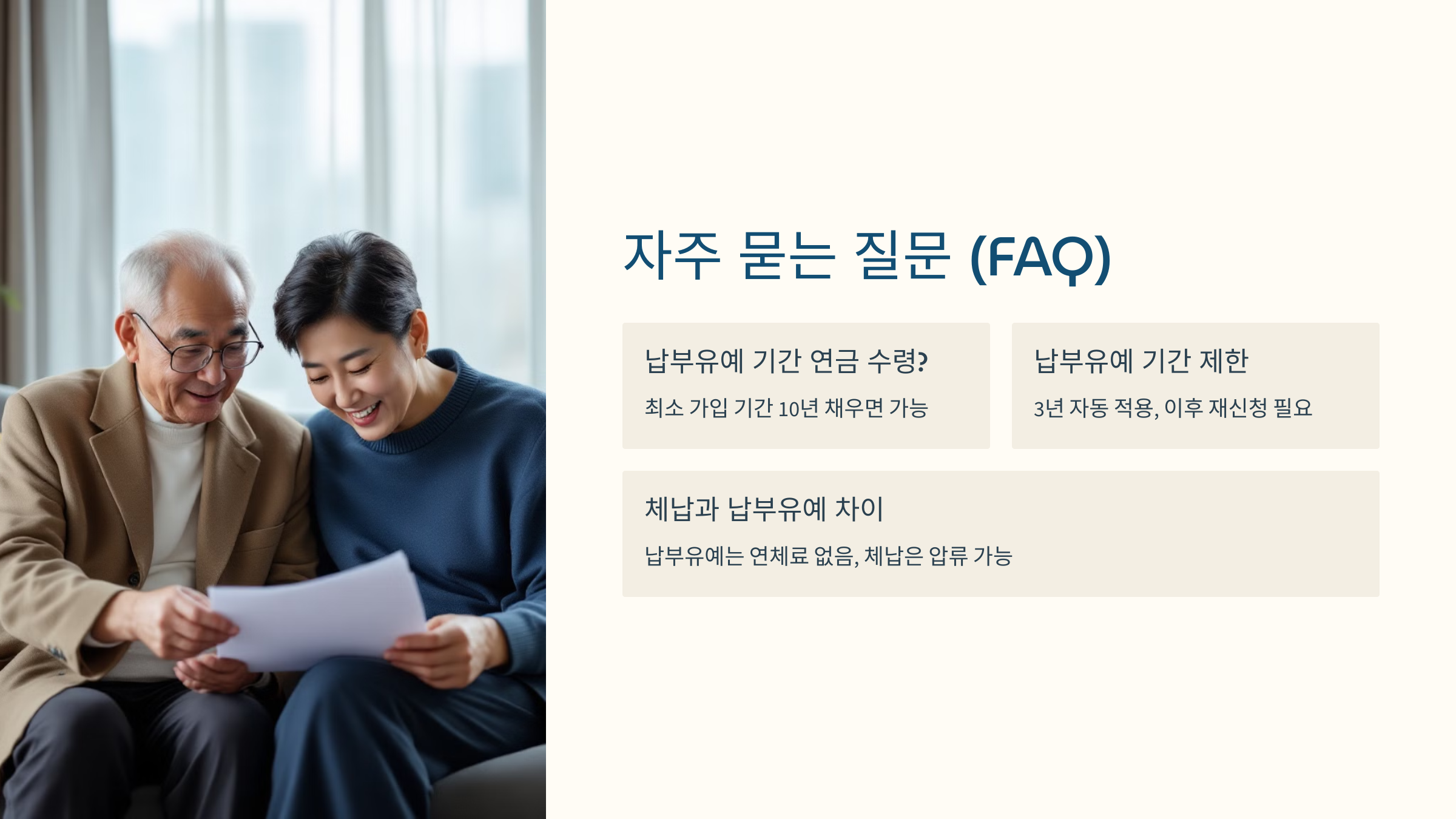 납부유예는 “잠시 멈춤”이지 “포기”가 아니에요. 상황이 나아지면 언제든 다시 이어갈 수 있어요. 부담은 줄이고, 권리는 유지하세요! 💪